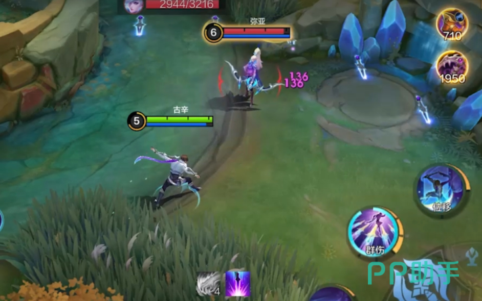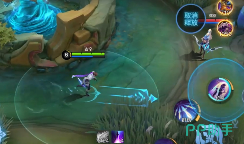 1技能丢出短剑对命中第一个目标造成伤害并标记,再次使用的话,古辛就可以位移到目标的身后造成二段伤害,凭借这个技能去标记敌方的一些脆皮射手、法师,完成切入配合其他技能将敌人秒杀。