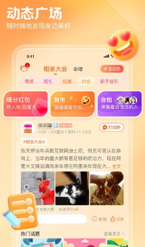现在的年轻人都没有自己的空间,更别提认识更多的朋友了,大家在交友的过程中也会有很多的局限性,这不最近就有一些用户问到了相亲软件app前十名有哪些?想要寻找这一类的相亲软件,靠谱性也是至关重要的,我们很容易在这些软件上遇到骗子,到时候自己的金钱受到损失,下面小编就将推荐几款好用的相亲APP,可以让我们免费的进行使用,快速找到属于自己的另一半。