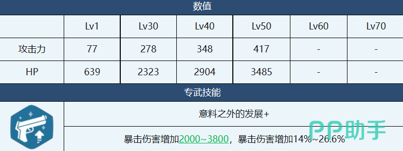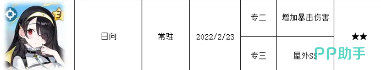 专武技能:日向的专武技能是“意料之外的发展”,它可以在回合开始时给日向增加一个“太阳之力”的状态,持续3回合。这个状态可以让日向的普通攻击和技能攻击都变成光属性,并且提升14%-26%的爆伤。另外,当日向处于“太阳之力”状态时,她的技能“太阳之刃”还会额外附带一个“灼烧”的效果,让敌人每回合受到一定比例的伤害。