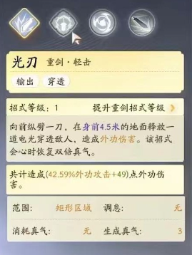 重剑技能是一种以力量为主的武学,适合近距离的肉搏战。重剑技能有以下几种:月涧横:这是重剑的基础技能之一,可以在普攻虚拟按钮连点时释放,造成外功伤害。闪身刺:是我们重剑的另一个基础技,可以在虚拟按键蓄力长按释放,造成外功伤害,并且可以闪避敌人的攻击。