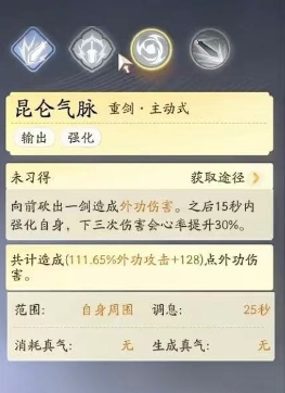 昆仑气脉:这是迅雷剑法的主动技能之一,可以在1号键位上使用,造成外功伤害,并且可以提高自身的会心率。威临宇宙:这是迅雷剑法的绝技之一,可以在2号键位上使用,造成外功伤害,并且可以在20秒内触发落泪效果,造成额外的外功伤害。