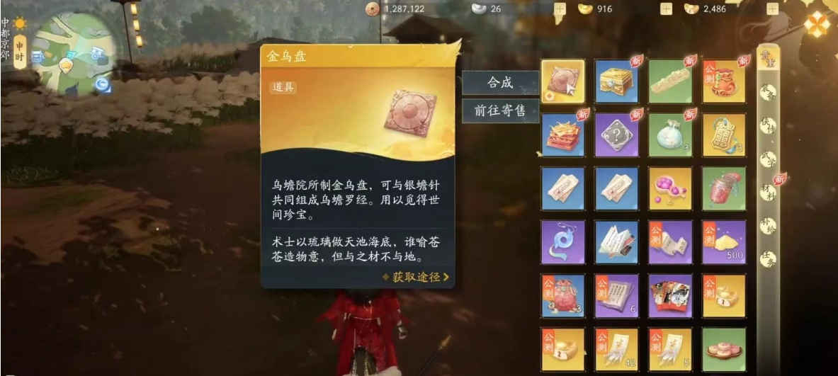 其次,你需要在背包中将射雕金乌盘和银蝉针合成为乌蟾罗经,这是一个更加神奇的道具。乌蟾罗经可以让你在野外地图上发现隐藏的宝藏,这些宝藏里可能会有金色装备或者武学秘籍。你只需要在野外地图上使用乌蟾罗经,就会出现一个指针,指向宝藏的位置。你沿着指针前进,就能找到宝藏了。