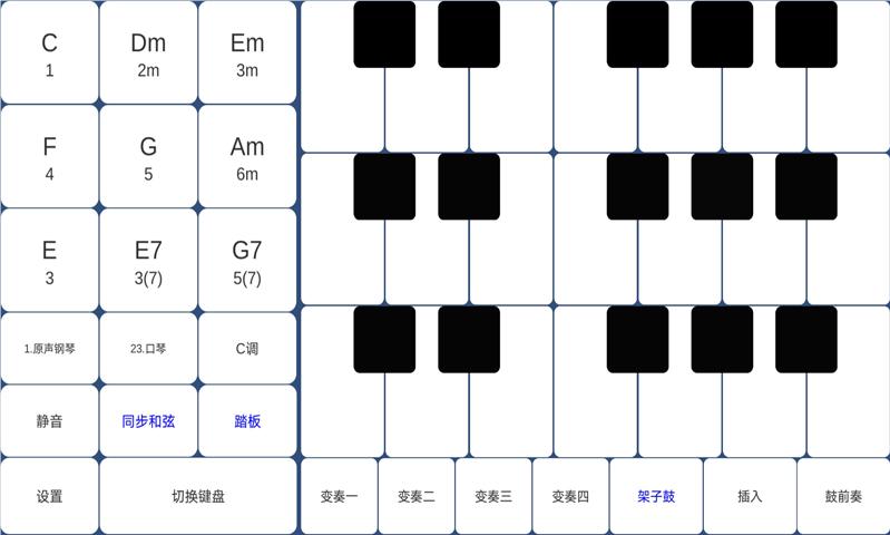 这款软件功能多样,实现不止一种乐器模拟,比如钢琴、吉他等,支持音色和音调调整,更换伴奏风格等。用户一个人能撑起整个乐队,实现自娱自乐和为他人伴奏。