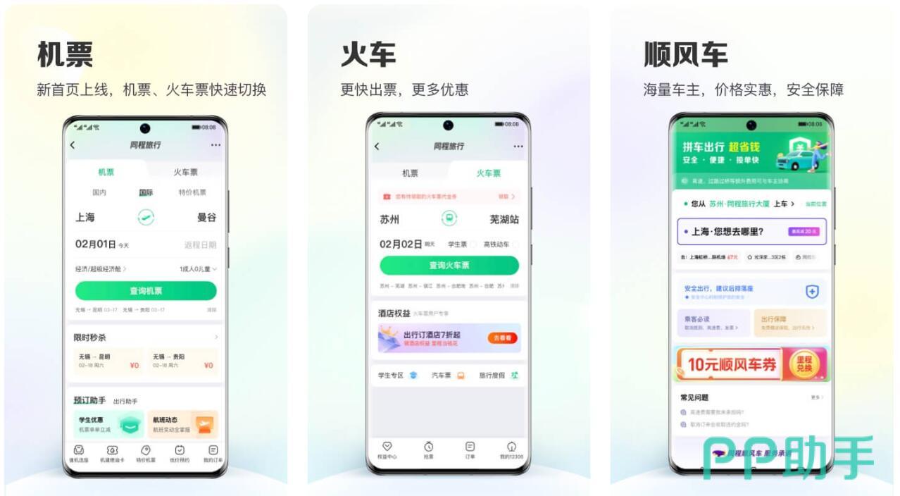 用户可以直接通过本款app来随时选择不同的出行方式,无论是机票还是火车票都可以在软件当中进行预订,与此同时大家在同城出门的时候还可以通过软件快速打车,顺风车的服务也会让各位进一步节省每一次出门的预算。而在使用方面,每一个功能都将满足各位的不同需求,对于订机票的各位也可以享受到改签的服务,大家还可以在线查询不同的航班信息。