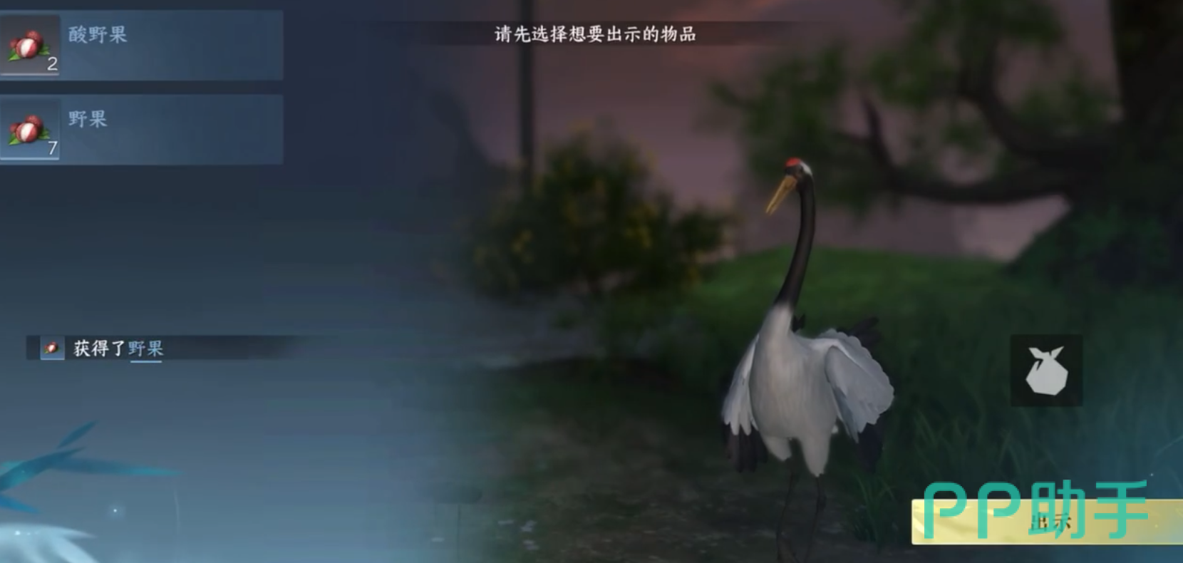 滑完雪后,下一个任务地点回三清山,坐标是1195,930。捡起草丛里的野果,投喂给指定的野鹤,这里需要玩家注意,三清山上有非常多鹤,投喂之前看清任务要求不要喂错鹤。