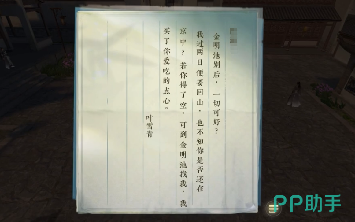 按照提示来到汴京郊外坐标1681,1230,走近光标处,进入单人副本。与叶雪青对话后,捡起前面掉落的东西,发现是一本以气御剑的武术秘籍。