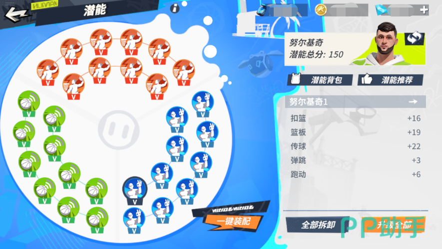 另外其主动技能可以提供额外的抓帽动作,同时还有盖帽成功率与盖帽成功后的能量加成,同时一手挡拆和卡位的能力也可以帮助队友创造进攻空间,并保障自己抢板时能获取有利位置,其技能还会在队友出手后获得移速加成,配合本身自带的抢板技能更远更快的摘到篮板。