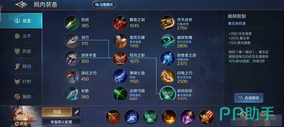 刘备的出装应该以提高物理攻击和暴击率为主,同时也要考虑一些防御和生存能力。推荐的出装顺序是:定位星盘、狂风之靴、[无尽之刃]。定位星盘可以增加刘备的移速和攻击力,并且可以在使用技能后提供额外的普攻伤害。狂风之靴可以增加刘备的移速和攻速,并且可以减少瞬息千里cd。