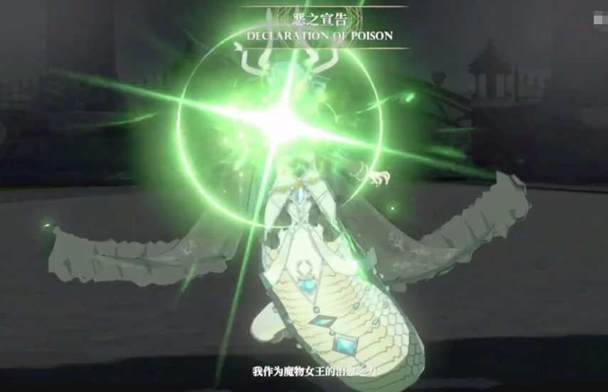 第二个技能同样是一个五回合冷却时间的技能,使用这个技能的时候针对的是己方角色,给己方成员中的魔女角色带来20%左右的伤害提升效果,所以如果大家为阿波菲斯组队的话,最好队伍里面除了她自己之外,其他的角色都选择魔女角色,这样这个技能的效果才可以发挥到极致。