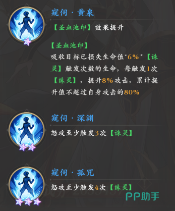 觉醒之后,还可以获取三个特殊的窥伺技能,其中黄泉可以进一步提升圣元的吸血和攻击力,而深渊和孤咒则能够保障大招更高频率的触发“诛灵”。
