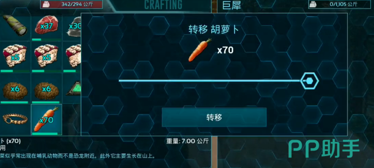 巨犀一般分布在红树林、河边多一点,所以大家还是蛮容易驯服的。方舟生存进化手游巨犀吃什么?搭配上巨犀该吃的食物之后,用武器将巨犀击晕之后,便可用上面的食物喂养它,就能成为你的忠实好伙伴了。