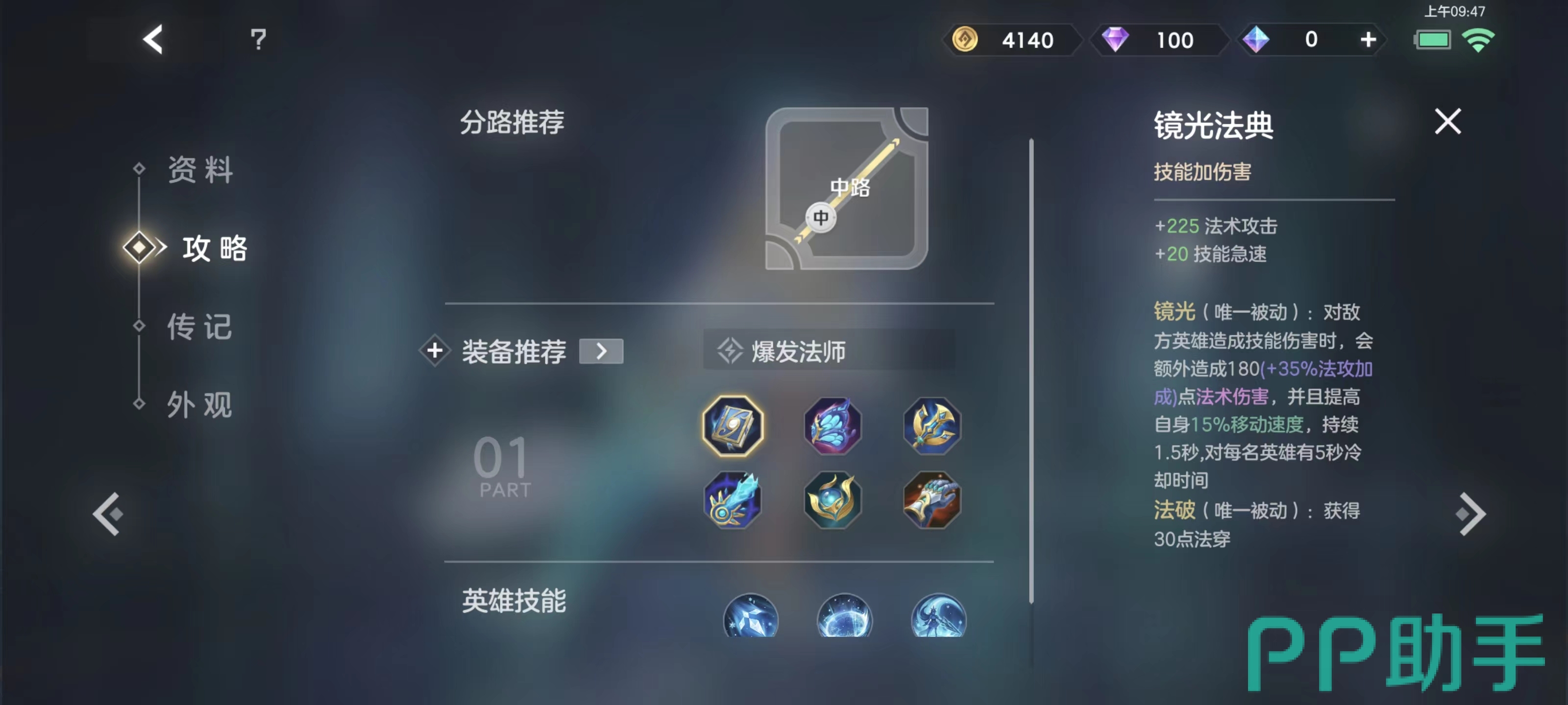 推荐的这套出装就是“镜光法典+风暴之翼+法能陷阱+碧蓝怒火+降魔宝珠+圣歌礼赞”,其中镜光法典建议先出,因为它对于夏尔美的提升最为全面,有225点法术攻击还有20技能急速,被动还提供了移速,伤害和法穿,无论是输出,机动性还是冷却都得到了完美兼顾。