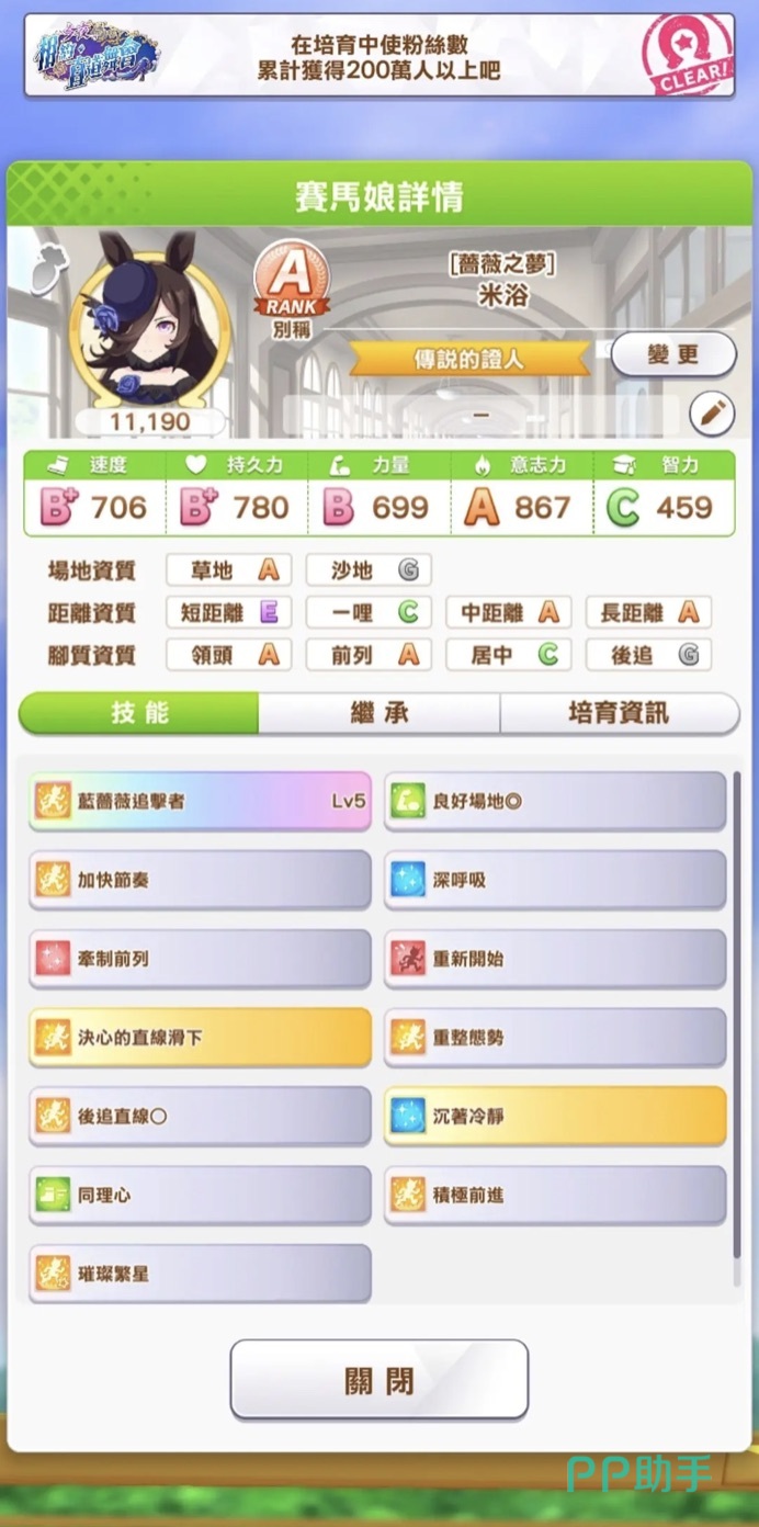 位置良好加分: 比赛会被分为初期、中期和末期。在进入中期和末期时,检查赛马娘是否处于适当位置,良好的位置将赚取额外的加分奖励。不同作战对应不同的位置要求,避免选择重复的作战。