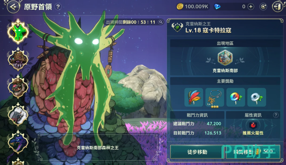 首先是可卡特拉科,它是一个巨大的绿色鸟类,等级为18,出现在克雷纳斯。它的战力入门是47200,推荐属性是火属性。它的主要奖励是套装项链,可以提升我们主属性。打法上要注意躲避它的飞行攻击和羽毛风暴,尽量靠近它的身体攻击,利用火属性对可卡特拉科造成额外伤害。