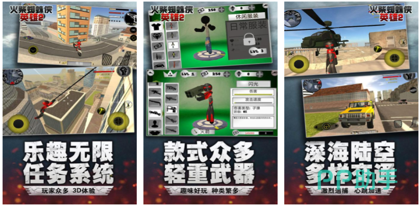 这是款单机不用联网的火柴人系列3D动作类游戏,你将化身火柴人蜘蛛侠在城市中四处游荡,用各种各样的武器和自身的技能打击犯罪,款式众多的交通工具和多样化的皮肤让人目不暇接,乐趣无穷的任务系统大大增加了游戏的可玩性,角色的动作捕捉技术非常完美和画面效果一流,免费下载又不氪金的设定让游戏更显良心。