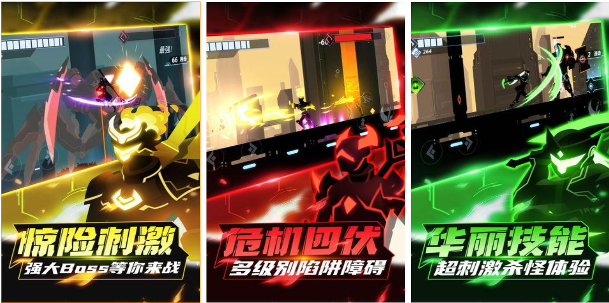 这是款具有鲜艳画面感的火柴人横版格斗游戏,出色的画面渲染加上机械造型的火柴人形象,绝对能颠覆大家对“火柴人”的刻板印象,华丽的技能特效和超帅的招式动作让火柴人看上去更加生动,惊险刺激的战斗氛围和形形色色的敌人也让游戏更具魅力,通过切换战斗方式实现的连招也非常帅气,火柴人爱好者和格斗游戏迷千万别错过!