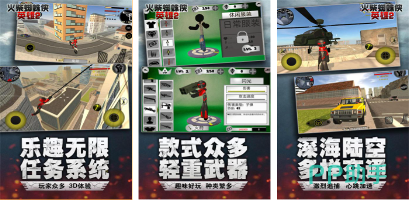 火柴蜘蛛侠英雄2是款具有3D画面的火柴人格斗游戏,你将化身火柴人蜘蛛侠在城市中借助绳索游荡,纯3D的视觉效果和出众的画面渲染让本作更具观赏性,精彩的战斗动作加上种类繁多的武器也是游戏的亮点,3D立体的城市背景和多样化的任务系统更为游戏增色不少,不管你是蜘蛛侠的粉丝还是火柴人游戏爱好者,火柴蜘蛛侠英雄2都能满足你的需求。