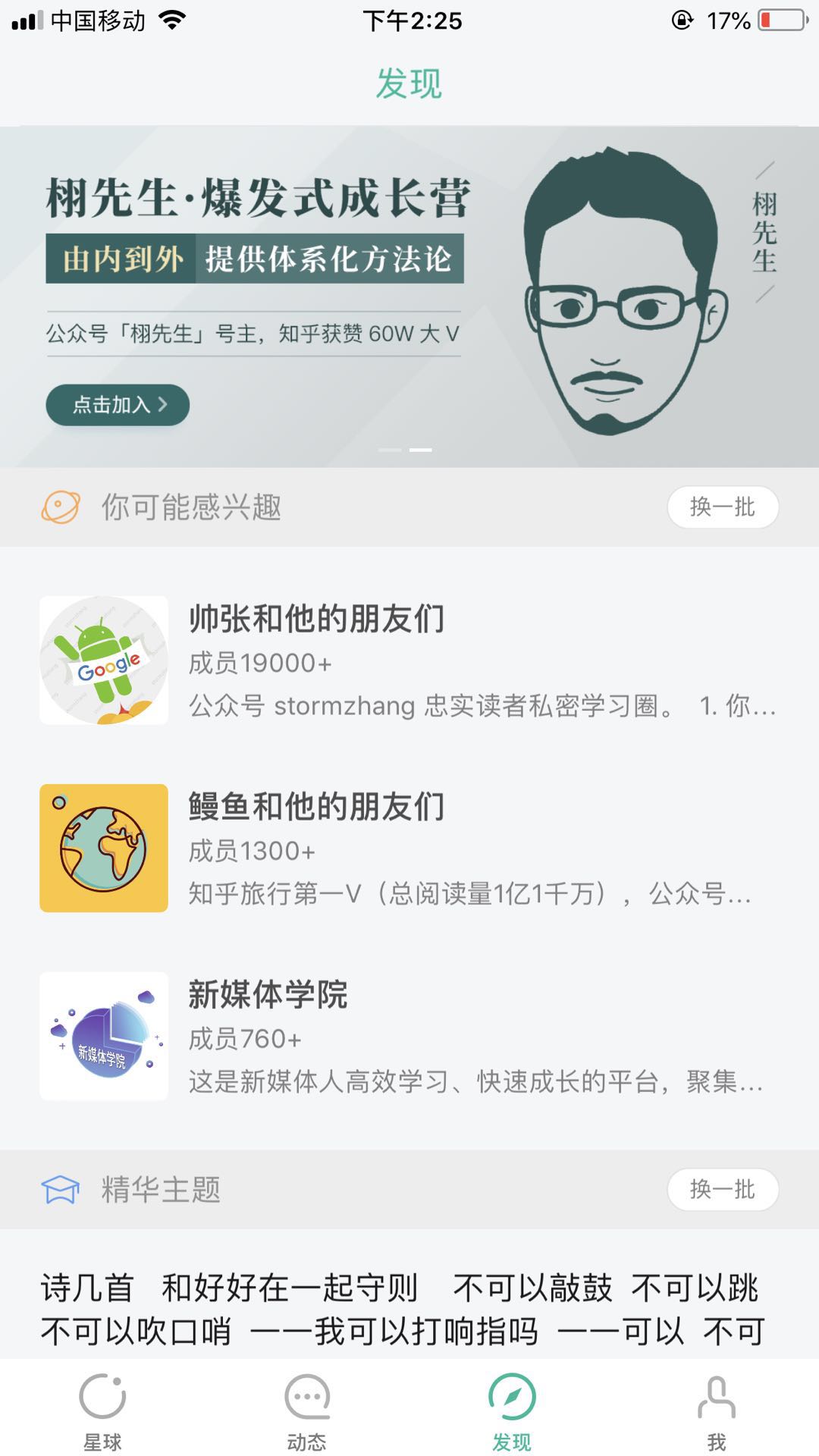 第一种:进入【发现】模块,系统会根据你搜索记录,推荐一批你可能感兴趣的星球。