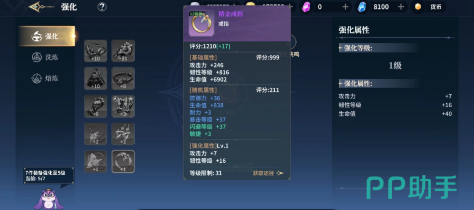 强化的过程会需要很多的材料,这些材料会对不同的部位装备进行强化,带来的不是角色属性提升,而是装备属性提升,不过根据角色等级的限制大家是不能将装备的等级提升到超过角色等级的,所以在游戏中大家也是要尽快将自己角色的等级提升之后才可以解锁更多的强化等级。