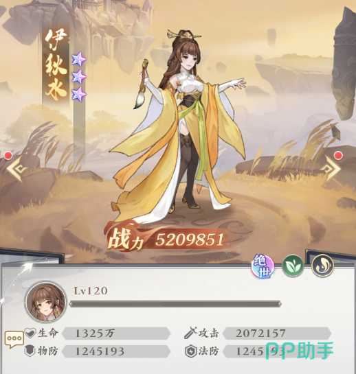 属性这块,伊秋水最大的优势在于血量,1325万的数值是领先于大多数角色的,这可以让她在实战中抗住更多波火力,并且其生命值的质量也非常高,这主要得益于其同样不俗的物防与法防,敌人不论用何种类型的伤害共计,秋水都可以撑很多下。