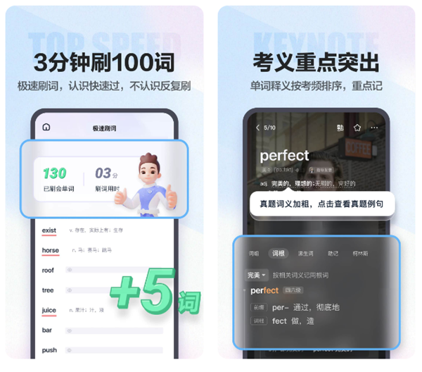 涵盖各个学习阶段的词库,集合了教材、音频、释义等多种模块。通过科学的记忆方法和合理的学习任务规划,让我们能够更加轻松的完成学习目标,对单词进行巩固记忆,更是带有跟读模式,在学习背诵的同时提高口语水平,反哺到语法的学习之中。