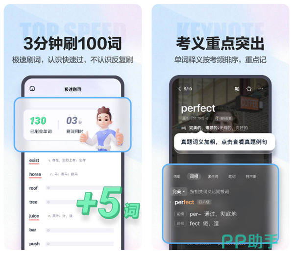 带有大量的题库和丰富的学习场景模式,软件开创性地加入了真人领读模式,通过不同的例句帮助我们理解单词的意思和常见用法,更是通过加入权威的词典方便我们进行查询。利用了速记卡、图文结合等方式提供快速记忆途径,配套的刷词练习进一步巩固加深,是一款不可多得的背单词神器。