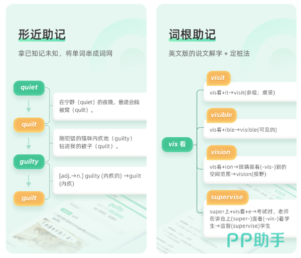 将单词科学记忆法和艾宾浩斯遗忘曲线相结合,通过软件中提供的大量练习就能够帮助我们将单词深深刻在脑海之中。软件带有卡片、助记、词典、生词本等多种实用模块和功能,满足不同学习阶段小伙伴需求的同时,更是可以根据自己的掌握情况来完成加深练习,从而达到想要的学习效果。