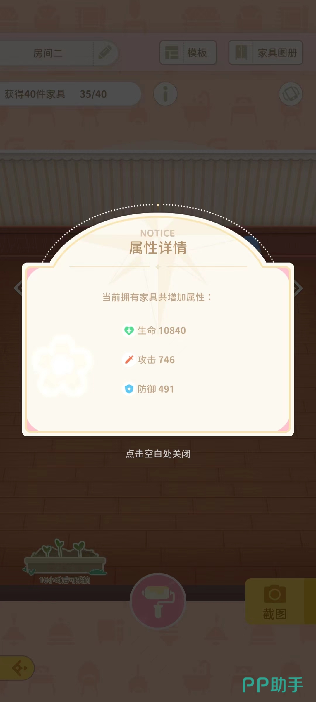 另外,我们摆放的各种家具都是有属性加成的,可以提高生命、防御、攻击这三个属性,所以大家即使不想精心摆放娃娃屋,也要尽量摆放多的家具和摆件。