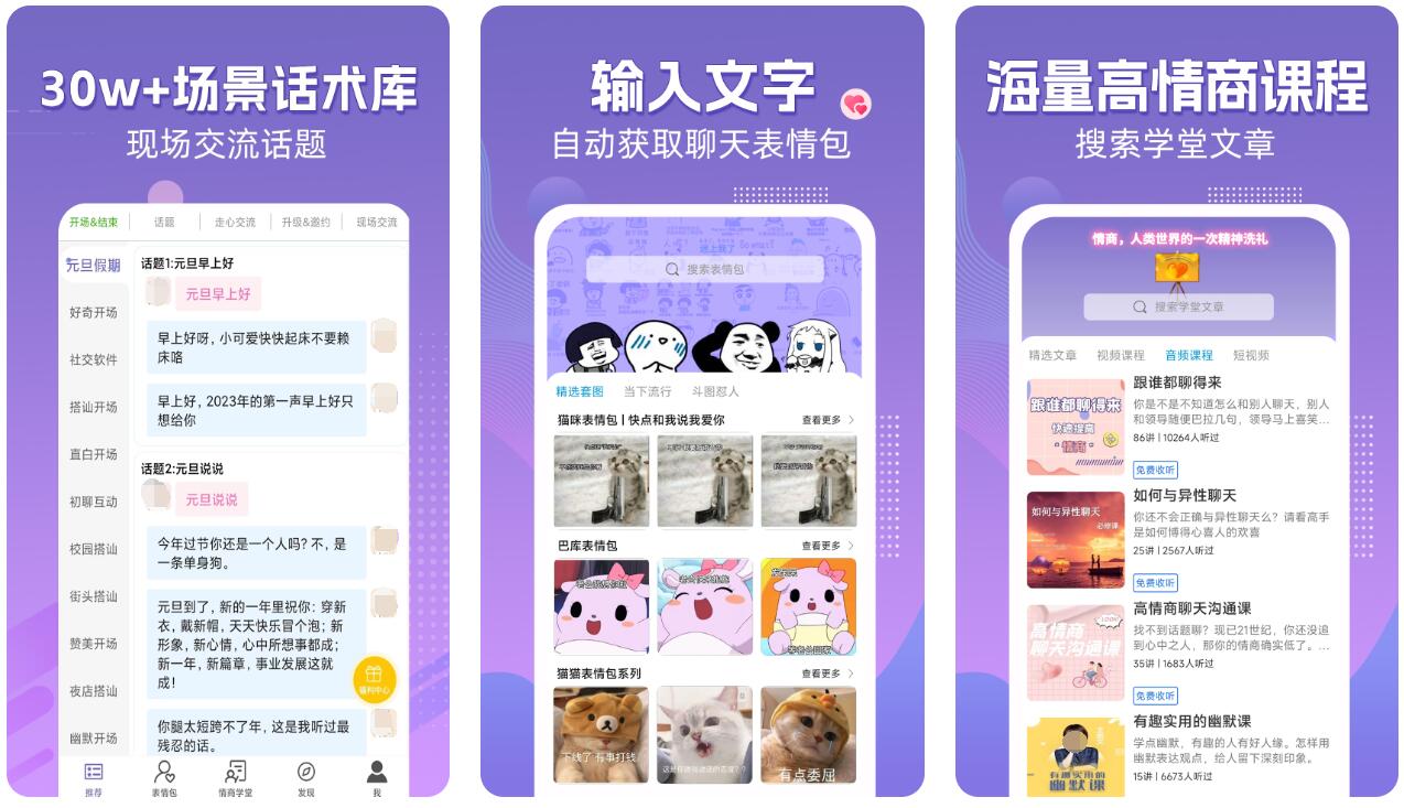 想要让自己在聊天的过程当中说出更多别人喜欢听的话吗?这款软件将实现用户的愿望,app会自动推荐当前合适的话术让用户来选择,而各位在此期间还可以体验到自动化的表情包功能,软件内也将开启免费的情商课程。