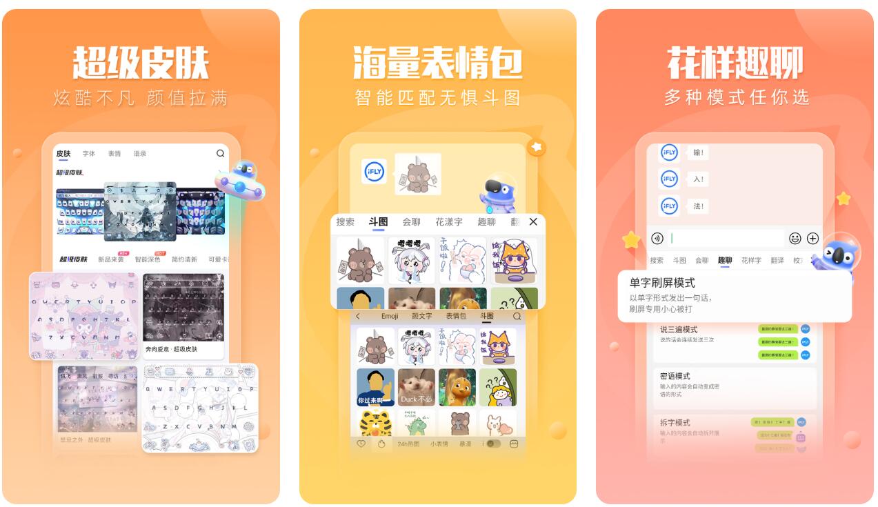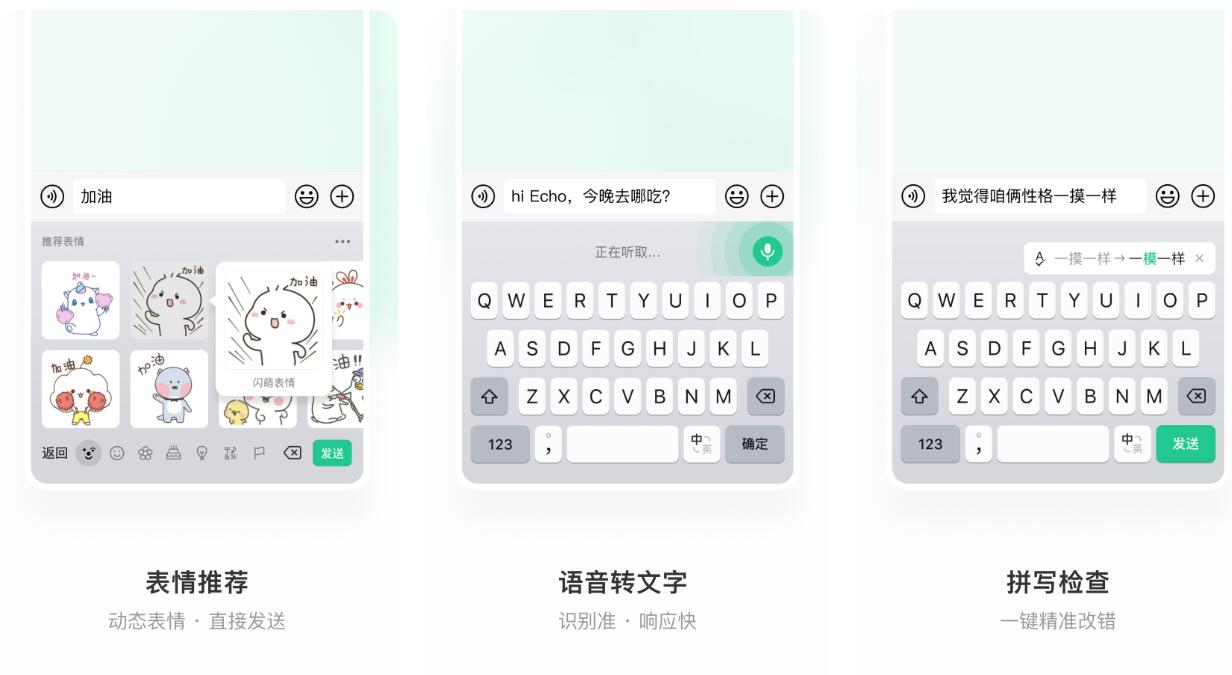 以表情包为主要功能之一的app,大家任何一次文字输入,软件都会快速匹配符合的表情素材让大家使用。好处在于可以节省斗图的时间,并且各位还可以在软件当中自定义输入法的键盘敲击音效。