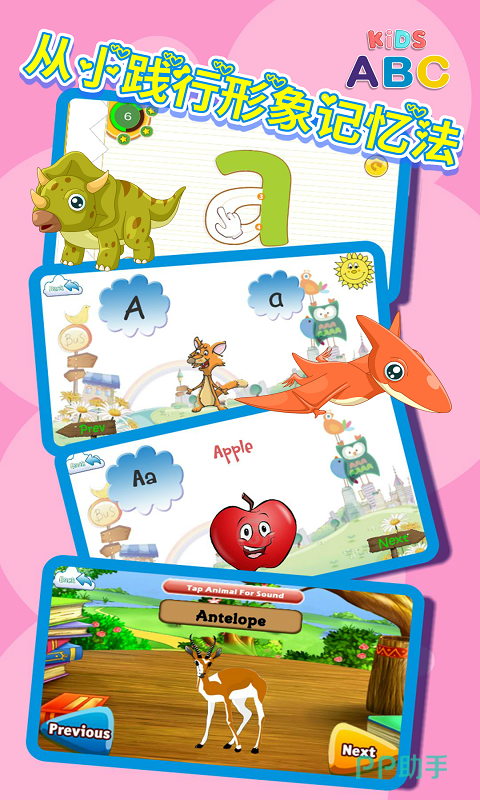 幼儿英语乐园是一款非常实用而且免费的英语学习程序。可以帮助你的孩子提高英语词汇、听力和英语的阅读能力。通过包括图像和发音,让孩子简单学习几百个基础英文单词。而且它的使用操作方法也特别的容易,简单。具有直观而且强大的界面,让许多小朋友可以轻松使用。