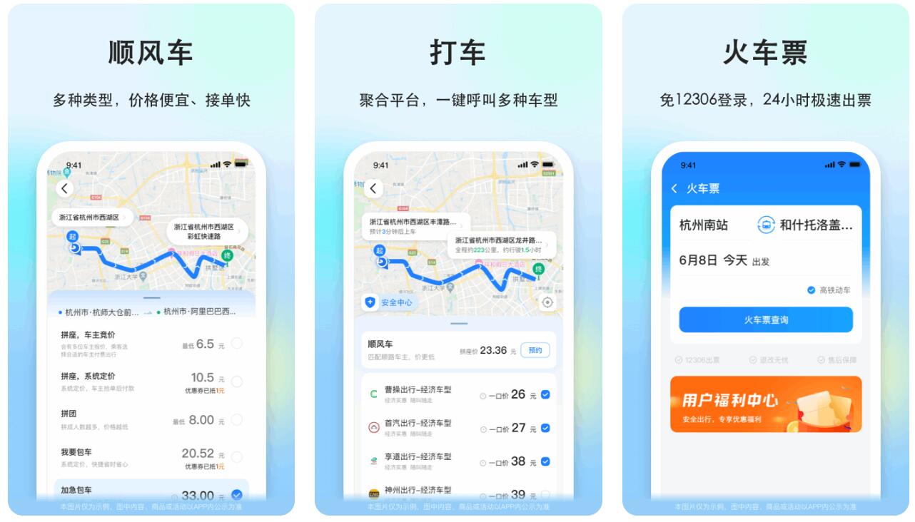 本款app集合了多样化的功能,用户可以在市内使用打车服务,同时如果想要出一趟远门的话,又可以通过顺风车功能来节约预算。当然了,春节想要回家的各位还可以直接通过软件来预订不同班次的火车票。
