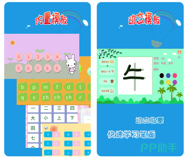 这款工具相对而言还带有一些早教的效果,适合学龄前的儿童就开始使用学习。初期在通过一些动画、图片课程教会孩子们如何识字的过程中就传达灌输一些书法方面的知识。通过有趣的动画展示充分激发宝宝们的学习兴趣,流畅的动画效果更是可以增加互动属性。