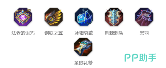 输出:法老诅咒,钢铁之翼,冰霜哀歌,荆棘刺盾,黑羽,圣歌礼赞