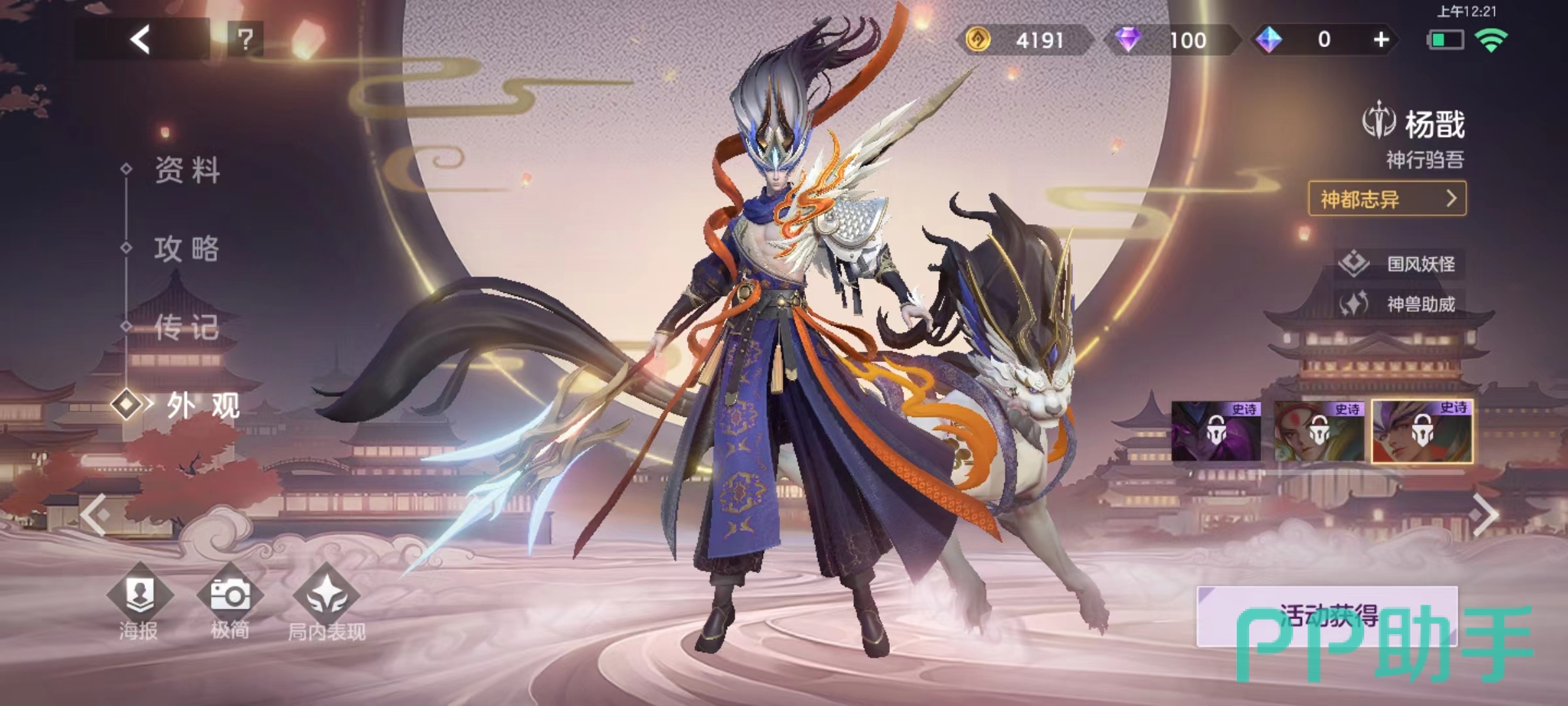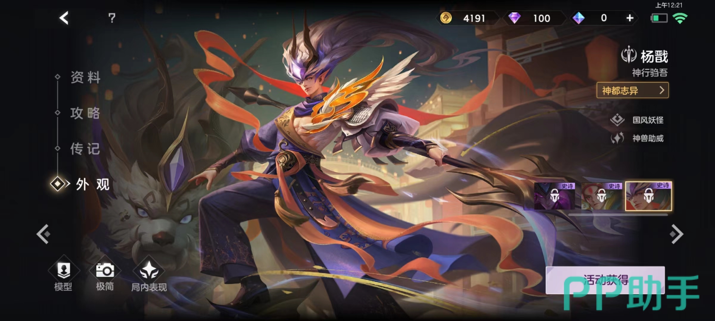 杨戬另外几个皮肤分别是史诗品质深渊之眼和战云天,其中是深渊之眼是之前玩家最喜欢的外观,极其霸气有着暗黑风格,还有专属于自己的定制动作等。战云天则是采用了京剧中的造型,代表的是国粹京剧元素,浑身祥云流彩。杨戬在实战中动作也偏向于大开大合技能,特效华丽,如果切换成这些外观之后,更是有专属特效。