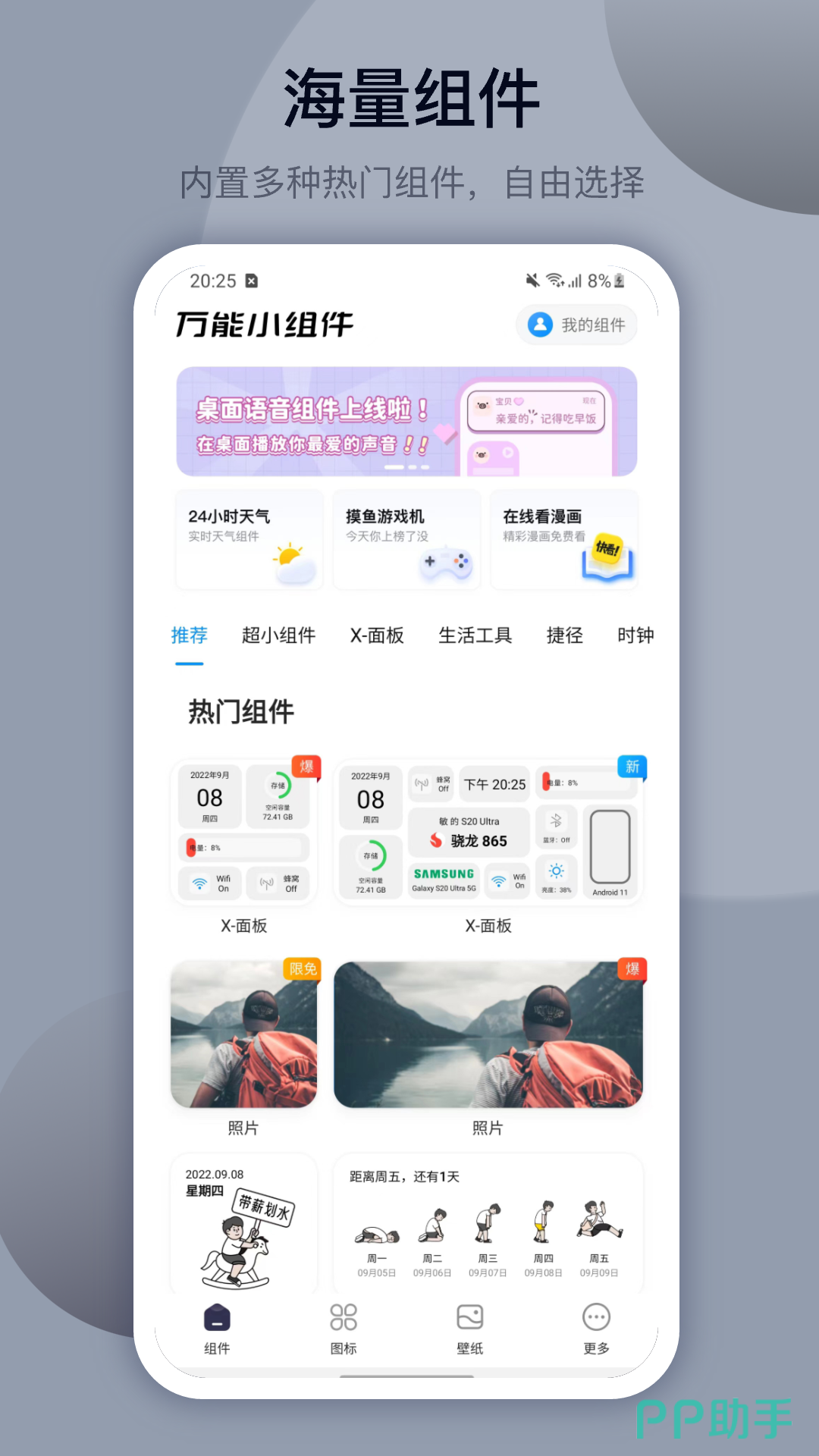 许多小伙伴们都想将自己的桌面装饰一下,但是大部分的软件中为用户提供得主题以及组件都不是非常美观。在这款软件中小伙伴们就不会再遇到这种烦恼,在软件中小伙伴们可以选择自己喜欢得图片并且将图片应用到组件中,同时软件中的便利贴也可以实时显示内容在锁屏壁纸上。