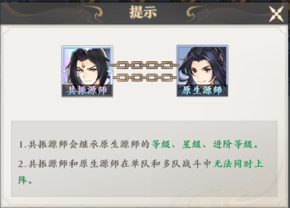 游戏中的共鸣玩法其实就是源师共振,玩家们点击源师玩法中,就可以看到目前所有收集到的源氏,源师的种类也分成了很多中,初始源师和共振源师是相互共享星级,品质,资源以及专精的,需要注意的是,相互共鸣的两个源师其实是同一个角色,只是【共振源师】会比原生源师的技能强度会高很多;