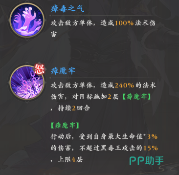 黑毒王本身擅长制造单体法术伤害,作为突击职业他的怒攻释放时间是很早的,通过怒攻还可以让敌人陷入瘴毒从而每回合都受到不俗的伤害,围绕他建队是很不错的选择,所以小编今天带来元尊手游黑毒王阵容搭配推荐,接下来会给大家推荐一套高强度的黑毒王阵容,赶紧一起来了解下吧!