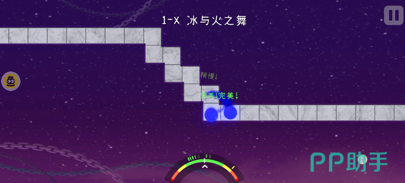然后需要注意游戏的轨道变化。在1-X 冰与火之舞中,轨道会有不同的形状和颜色,表示不同的事件。例如,蓝色的轨道表示旋转,会让行星转向;黄色的轨道表示加速或减速,会让行星变快或变慢;红色的轨道表示增加或减少行星,会让行星变多或变少。你要根据轨道的提示来调整自己的按键节奏和方向。