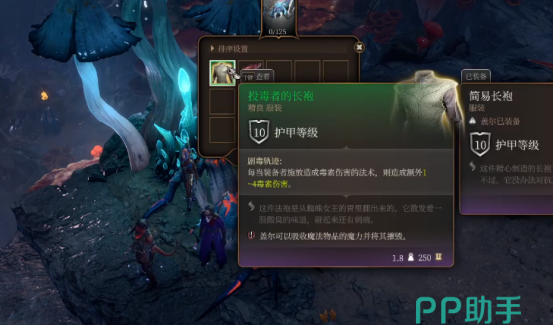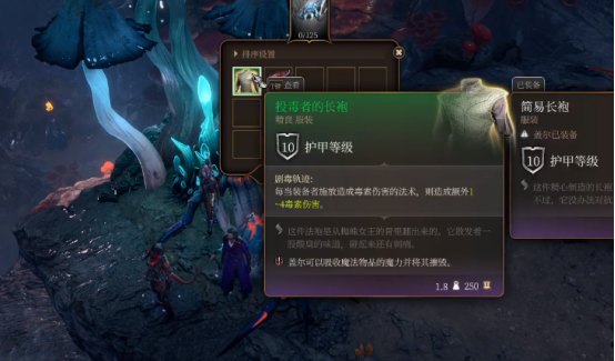 我们在将它解决后,可以点击它的尸体,它会给我们两个道具,一个是精良的投毒者长袍,可以造成额外的毒属性伤害。这个既可以给法师穿戴,也可以喂给盖尔提升他的属性。另一个是蜘蛛丝腺,可以用作制作蛛网爆弹。