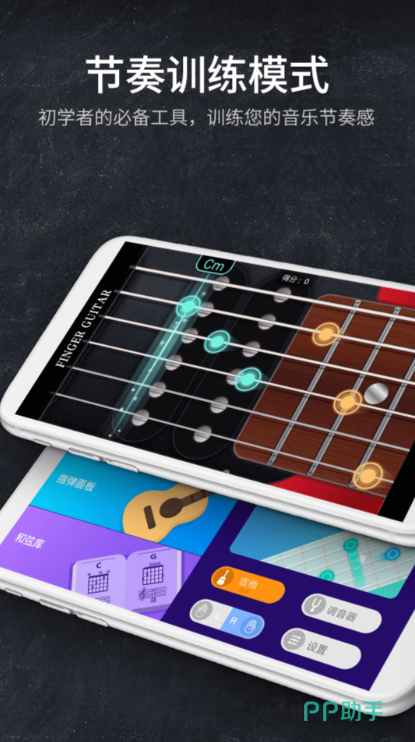 每种乐器都有自己的曲谱,在这个软件里就可以学到,其他的去补,很多人学习吉他是为了给歌声做伴奏,用这个软件就可以学到很多关于伴奏的知识,而且还能够弹出非常逼真的吉他音质。