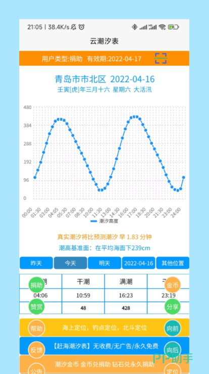 这个软件可以说是海边地区必备的一个软件了,不但能够预报天气,还可以通报潮汐的大小和具体到小时的时间,大家如果想要出海钓鱼,就可以用这个软件来预测潮汐了。