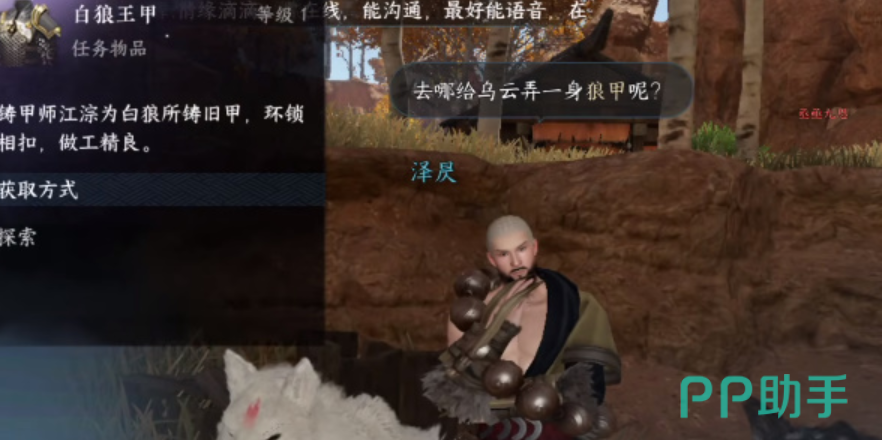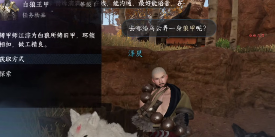 前往(497,497)的位置拾取银珠琵琶,放到自己的背包中,找到背包中残破的白狼王甲,然后去雁门关找到司马青衫这个npc跟他对话让他修复自己的残破白狼王甲,最后来宋辽边境(684,399)的位置领取击败狼王的任务,完成后就可以获得完整的白狼王甲。