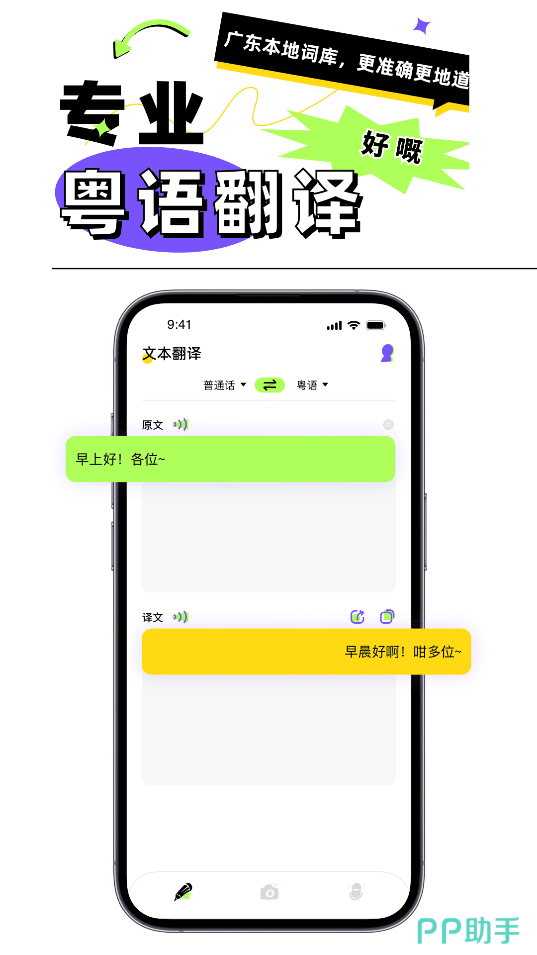 这是一款能够给大家提供最地道的粤语翻译小软件。大家到广东去旅行或者工作出差。肯定需要订酒店,打车或者是外出就餐。那么如果语言不通该怎么办呢?这时候可以使用这款翻译软件帮助大家翻译粤语,用户不论是想要将粤语翻译成汉语,还是想要将汉语翻译成粤语,都能提供准确流利的翻译结果。