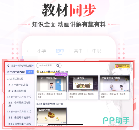 在这里真正的实现了教材的同步,大家只需要选择自己需要的教材即可,除了全面的知识讲解以外,也是拥有独特的动画讲解方式,让孩子更加容易接收,数学的学习也是变得更有趣。
