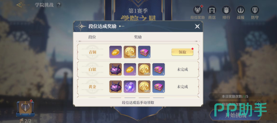 每天前面五次都是可以免费挑战的,一旦超过五次那么就只能在充值才可以继续挑战,或者是等待第二天撒户型次数,根据大家积分的变化,在段位上面也会相应的变化,最高段位就是战神这个段位,每一个段位都是有几个阶级的,大家可以根据自己的段位查看目前的积分。