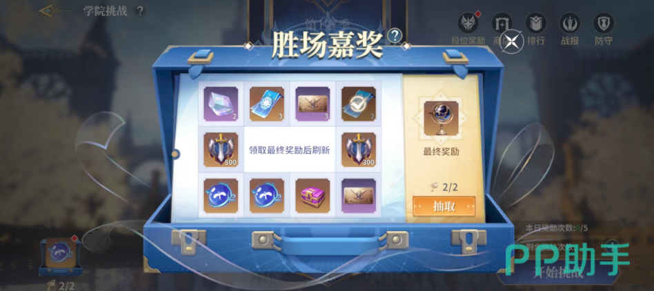 每一次获胜大家都可以在左下方拿到胜场嘉奖,但是上面的奖励是需要大家随机抽取的,除了这个生产嘉奖之外,大家还可以拿到自己的段位奖励,每一次提升一个段位大家就可以拿到相应段位的奖励,段位越高拿到的奖励就越丰厚。