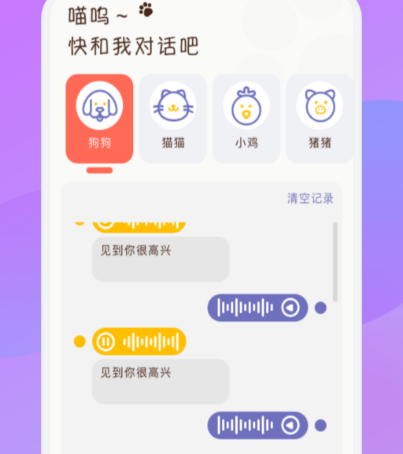在生活中有各种养猫,养狗人士不仅丰富生活也能让生活变得更有乐趣,想要和猫咪狗狗正常的沟通。口语翻译是非常好玩的软件,当狗狗大叫时,将狗狗的声音录下来,即可了解狗狗叫时具体的含义。