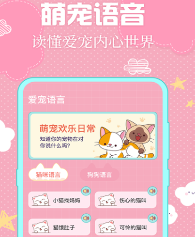 人类属于高级动物,能够学会各种语言,但是宠物就完全不一样,我们并不是一个世界的生物,因此双方之间有严重的语言障碍。使用宠物翻译解决这样的问题,软件适用于多种宠物,比如小猫小狗以及仓鼠等等。基于海量的动物行为进行数据分析及运算,是养宠达人必备的软件,下载该软件之后,宠物可清楚的了解到自己在说什么,而自己也能清楚的了解对方在想什么。