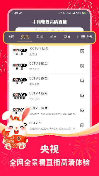 它发布超多电视节目单,覆盖了各大地方电视台、央视、卫视等,一键搜索找寻各种作品,比如体育比赛、趣味综艺节目、人物访谈、国防新闻、文艺汇演、电影等。